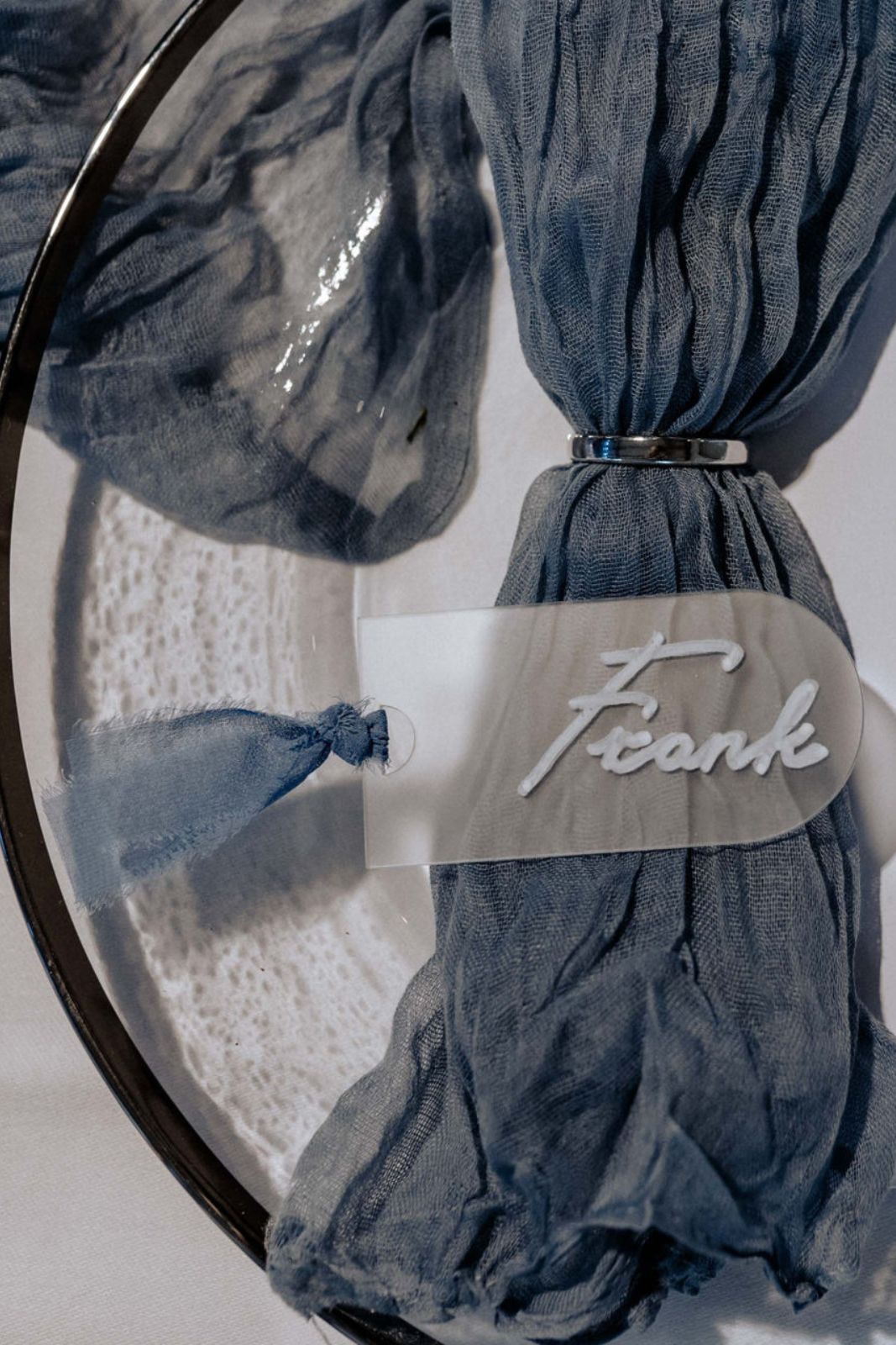 Das satinierte Acrylnamensschild "Tom" ist die perfekte Ergänzung für deine Tischdekoration. Du kannst es individuell mit einem hochwertigen Plott beschriften lassen und so jedem Gast eine persönliche Note verleihen. Mit dem abgestimmten Stoffband, das perfekt zu deinen Servietten passt, entsteht ein harmonisches Gesamtbild auf dem Teller (Band exklusive). So findet jeder Gast stilvoll seinen Platz und deine Tafel wird zum absoluten Hingucker.