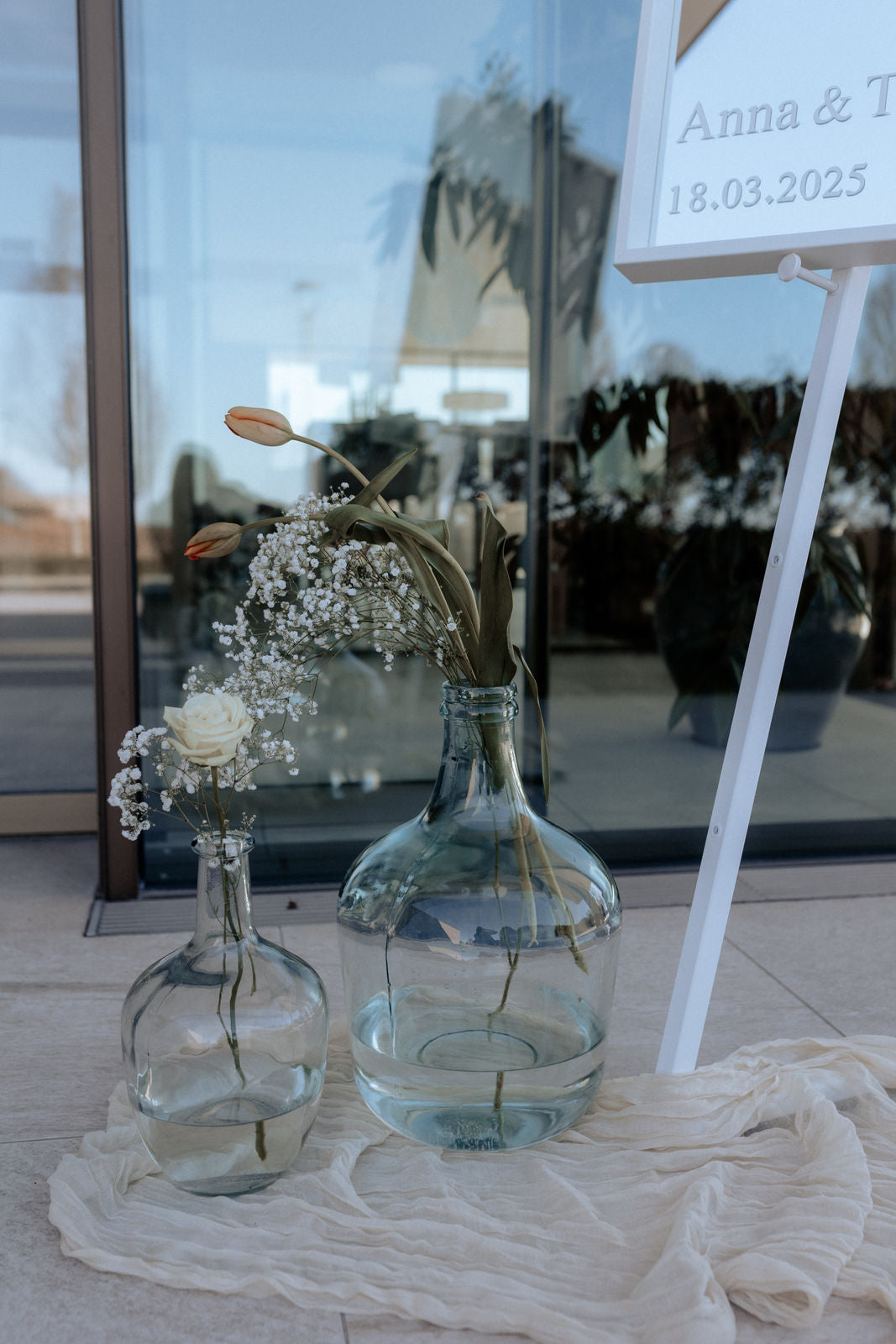 Die hochwertigen, großen Bodenvasen “Debbi“ setzen stilvolle Akzente auf eurer Hochzeit. Sie ergänzen perfekt euer Willkommensschild oder den Sitzplan mit passender Floristik und sorgen für ein harmonisches Gesamtbild. Auch für eure Trauung sind sie eine wunderschöne Wahl, um eure Location noch besonderer zu gestalten.