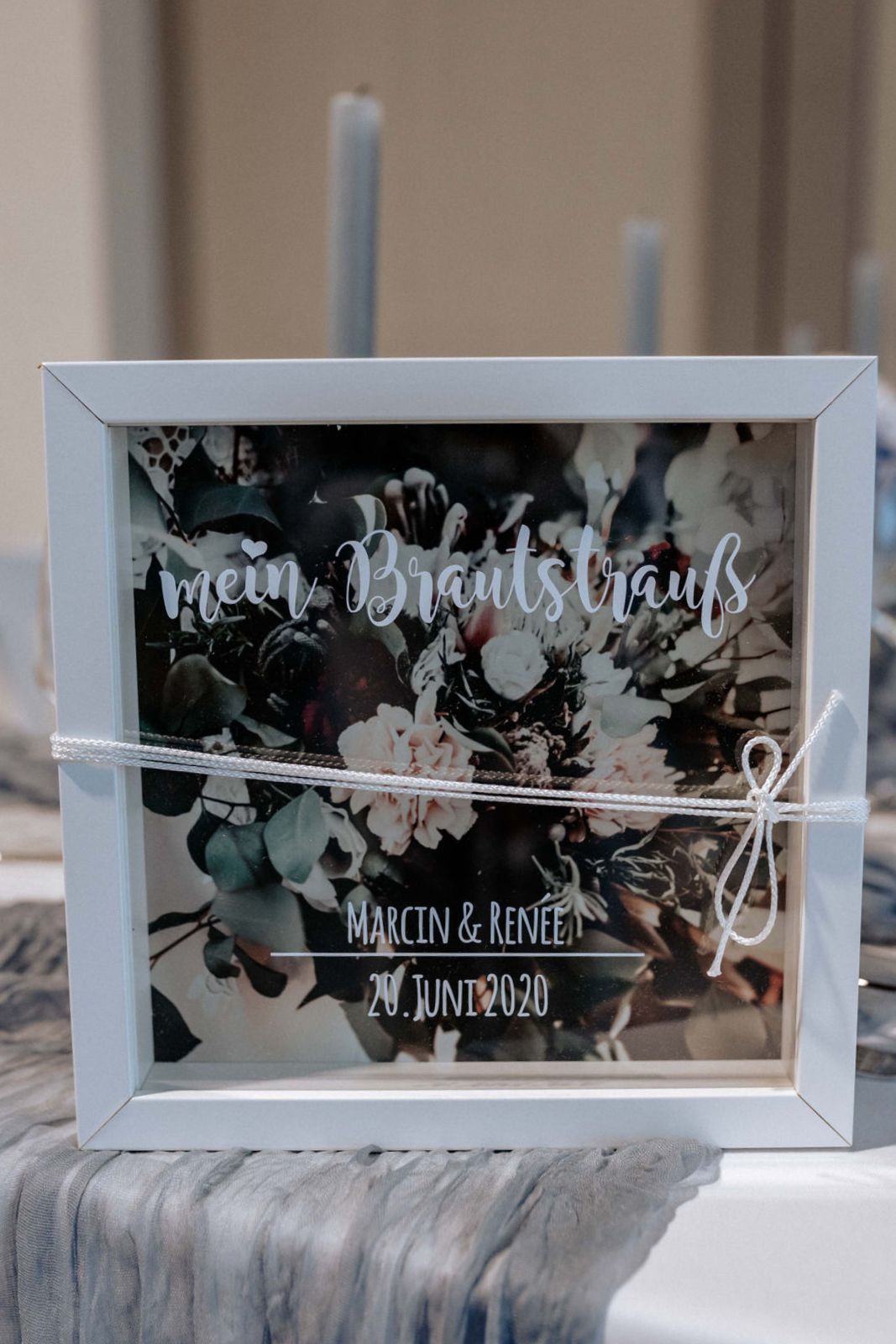 Der edle Rahmen "Lea" bietet die perfekte Möglichkeit, euren Brautstrauß für die Ewigkeit zu bewahren. Der Rahmen wird individuell beplottet und verleiht eurem Andenken eine persönliche Note. Nach eurer Hochzeit könnt ihr den Brautstrauß darin stilvoll verewigen – ein einzigartiges Erinnerungsstück an euren besonderen Tag.