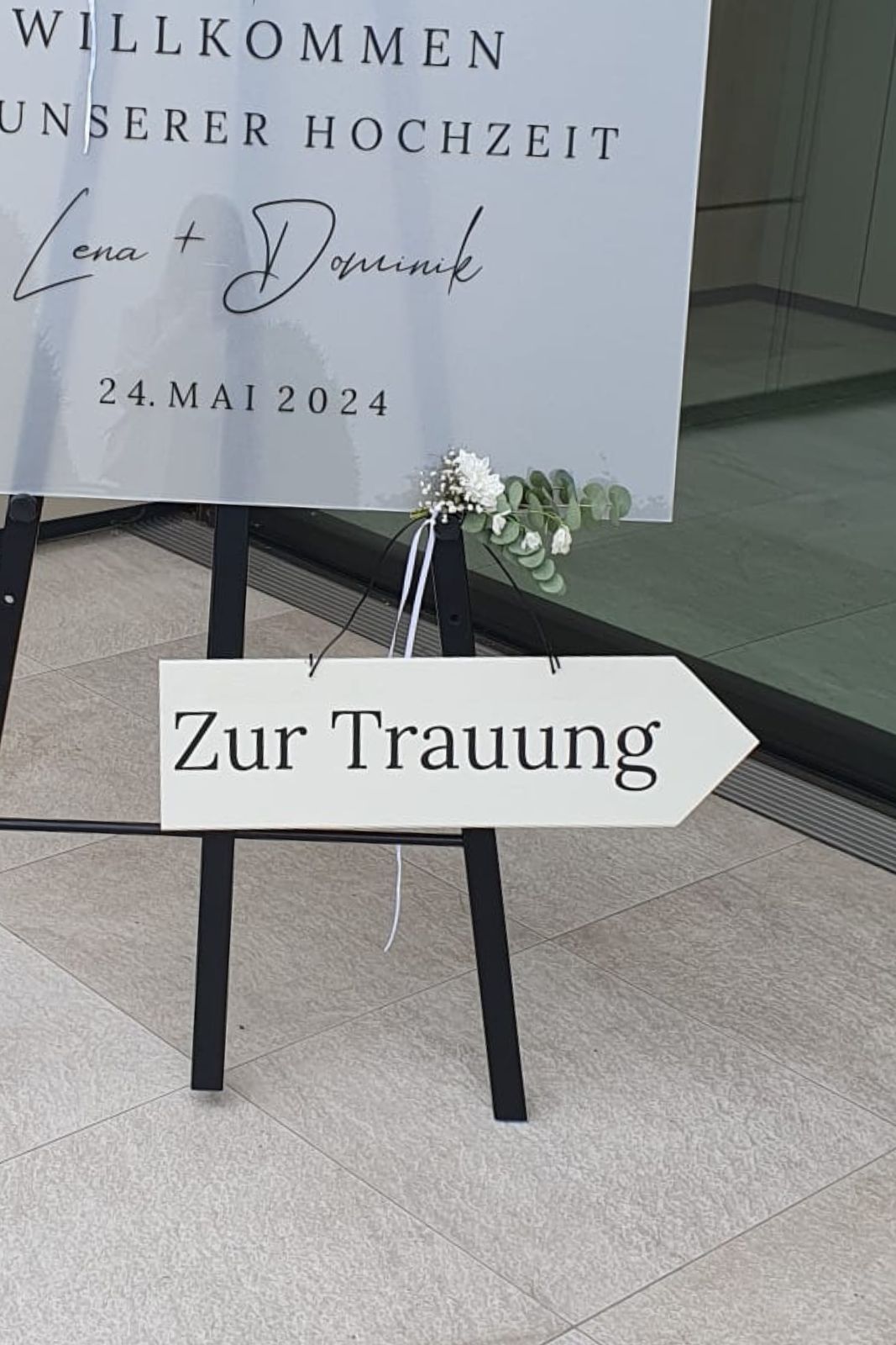 Dieser dekorative Pfeil kann nach euren Wünschen individuell beplottet werden und eignet sich perfekt, um an einem Willkommensschild befestigt zu werden. Ein kreativer Akzent, der eure Gäste auf charmante Weise begrüßt. Der Plot ist bereits im Preis mit inbegriffen.