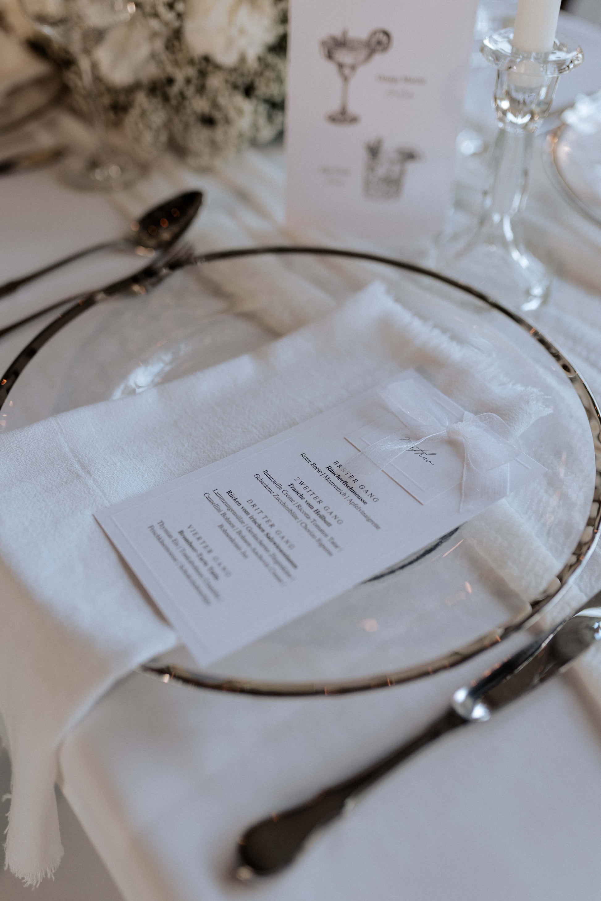 Der Platzteller „Ella“ besticht durch seinen edlen silbernen Rand, der ihm eine luxuriöse und zugleich dezente Ausstrahlung verleiht. Das klare Material sorgt für einen eleganten, schlichten Look, der die Tischdekoration stilvoll in Szene setzt, ohne von ihr abzulenken. Der silberne Akzent bringt einen modernen Glanz, der perfekt zu verschiedenen Farbthemen und Dekostilen passt.