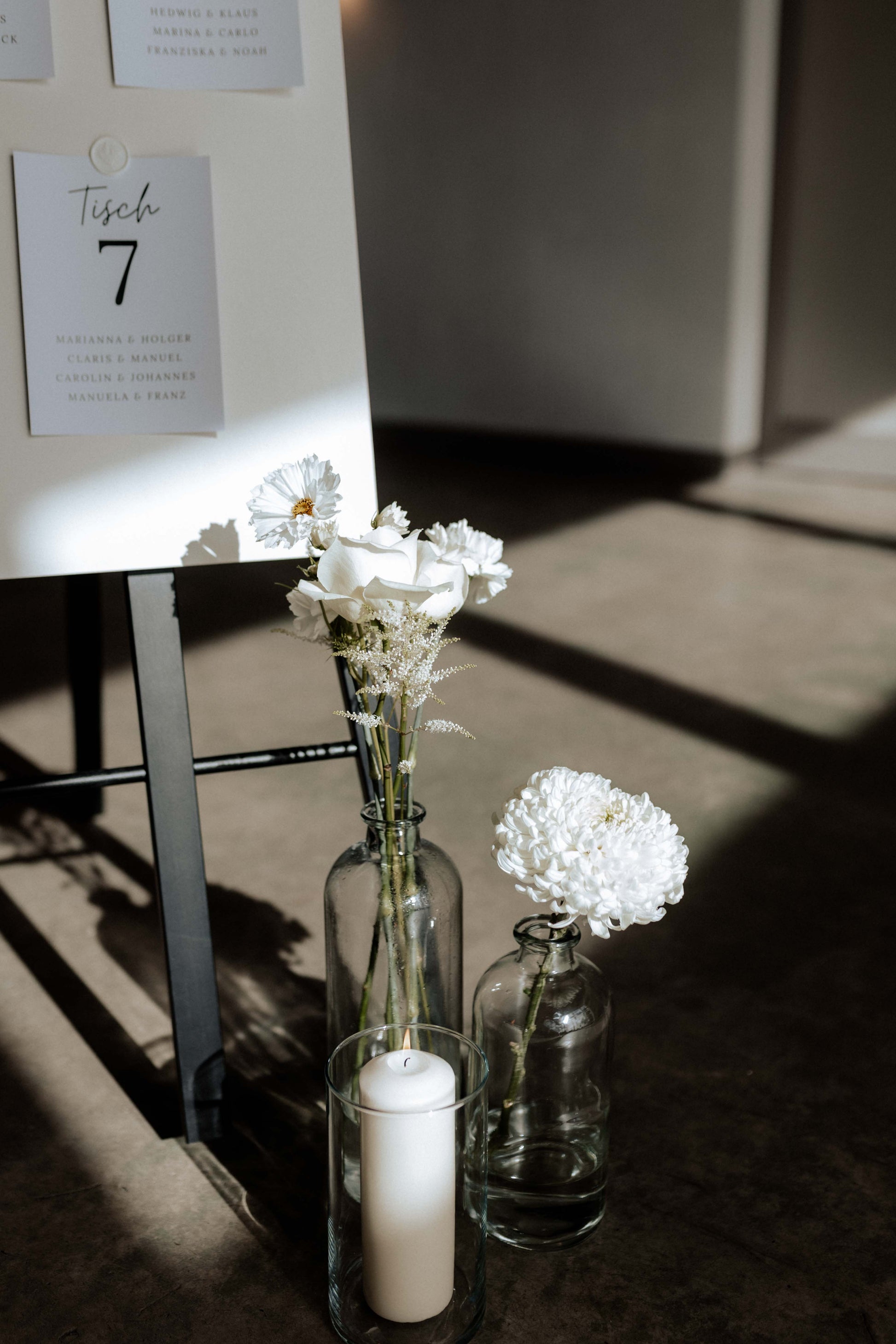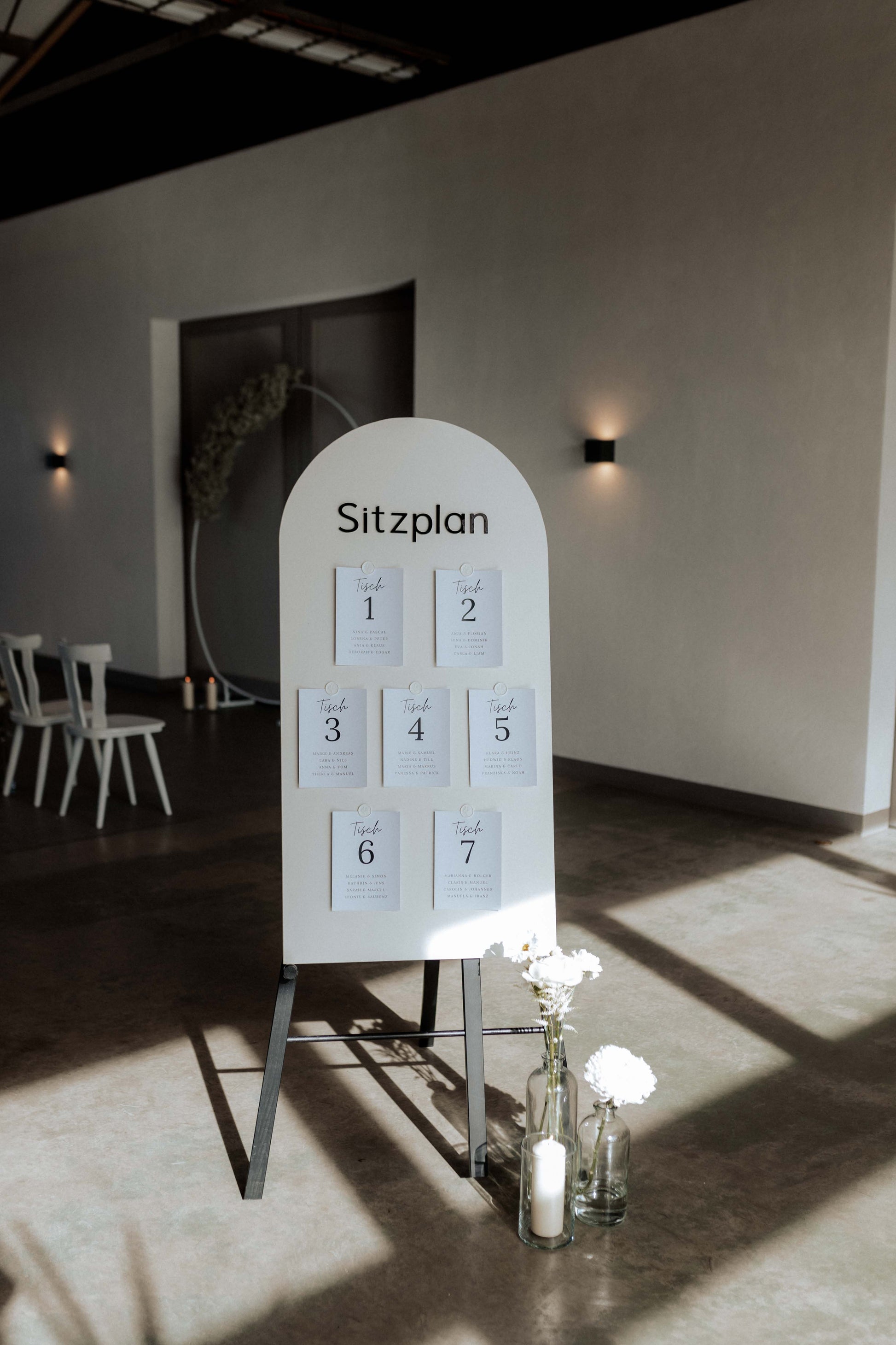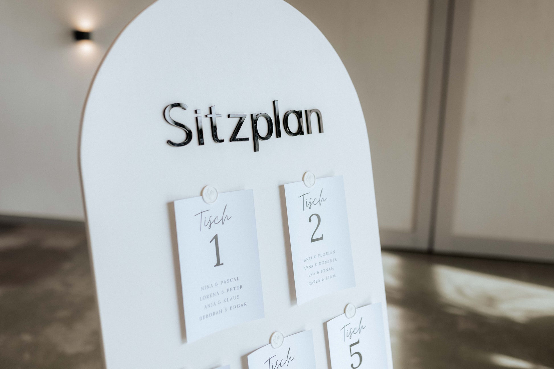 Stilvoll in Schwarz und Weiß, perfekt abgestimmt auf unser Willkommensschild „Theo & Noah“. Der Druck kann ganz nach euren Vorstellungen, auf Anfrage, personalisiert werden, um einen einzigartigen Look zu kreieren. Ein moderner und eleganter Sitzplan, der garantiert für Begeisterung bei euren Gästen sorgt!