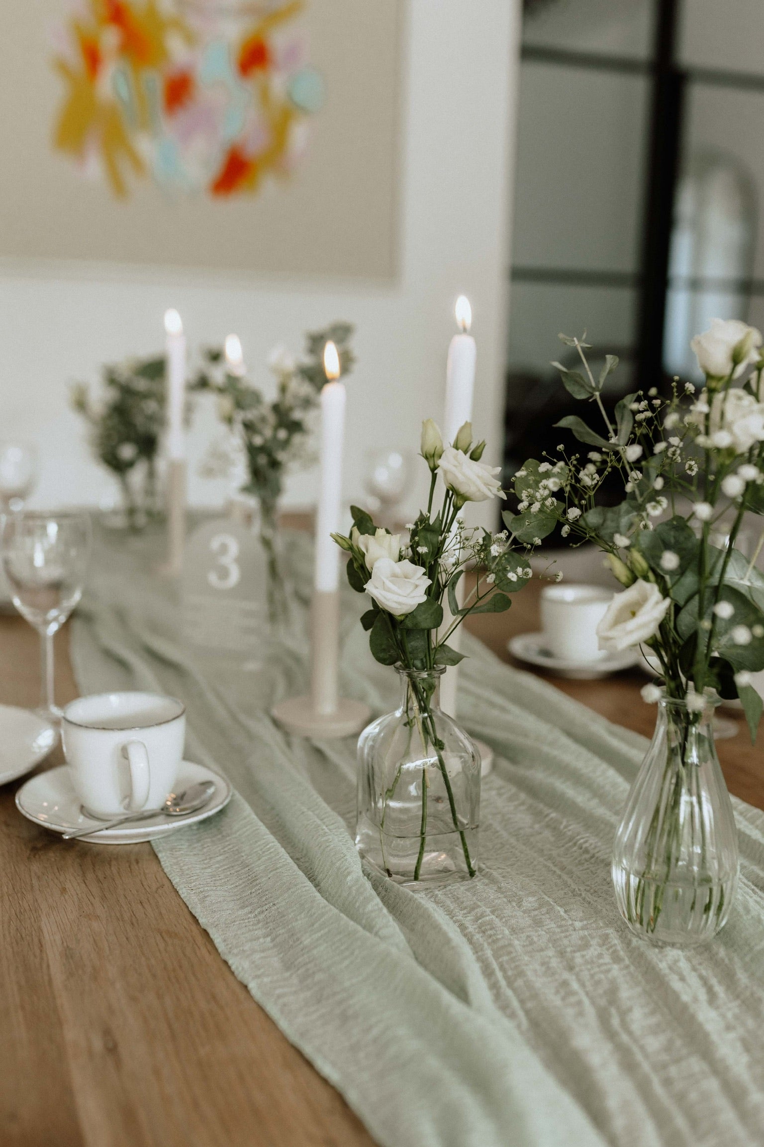 Der Tischläufer „Sabrina“ in einem sanften, beruhigenden Salbeigrün verleiht eurem Hochzeitstisch eine zarte, aber elegante Note. Aus leichtem, fließendem Material gefertigt, sorgt er für einen edlen Fall und fügt sich perfekt in jede Tischdekoration ein. Die dezente, natürliche Farbe passt sowohl zu klassischen als auch modernen Hochzeitsstilen und lässt sich mühelos mit floralen Arrangements, Kerzen und weiteren Dekoelementen kombinieren.