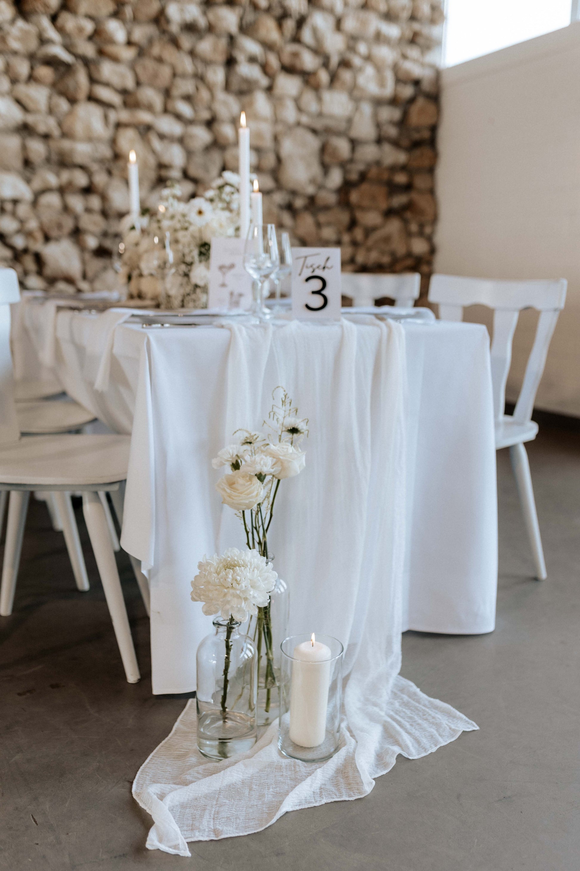 Der Tischläufer „Whitney“ in reinem Weiß bringt zeitlose Eleganz und Frische auf eure Hochzeitstische. Aus hochwertigem, leichtem Material gefertigt, fällt der Läufer sanft und sorgt für einen stilvollen, gepflegten Look. Die klassische, helle Farbe passt zu nahezu jeder Dekoration und lässt sich hervorragend mit floralen Arrangements, Kerzen oder anderen Details kombinieren.