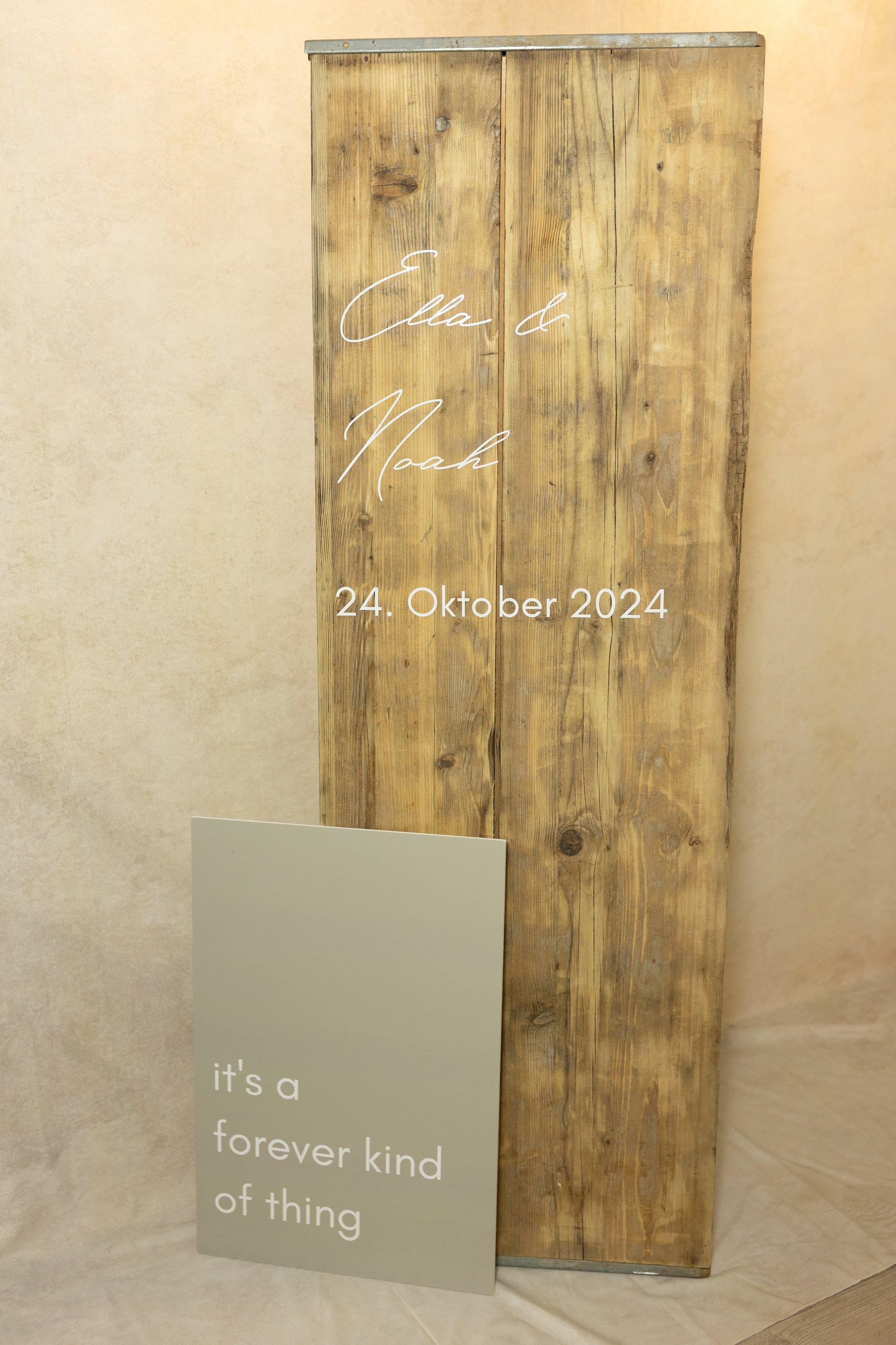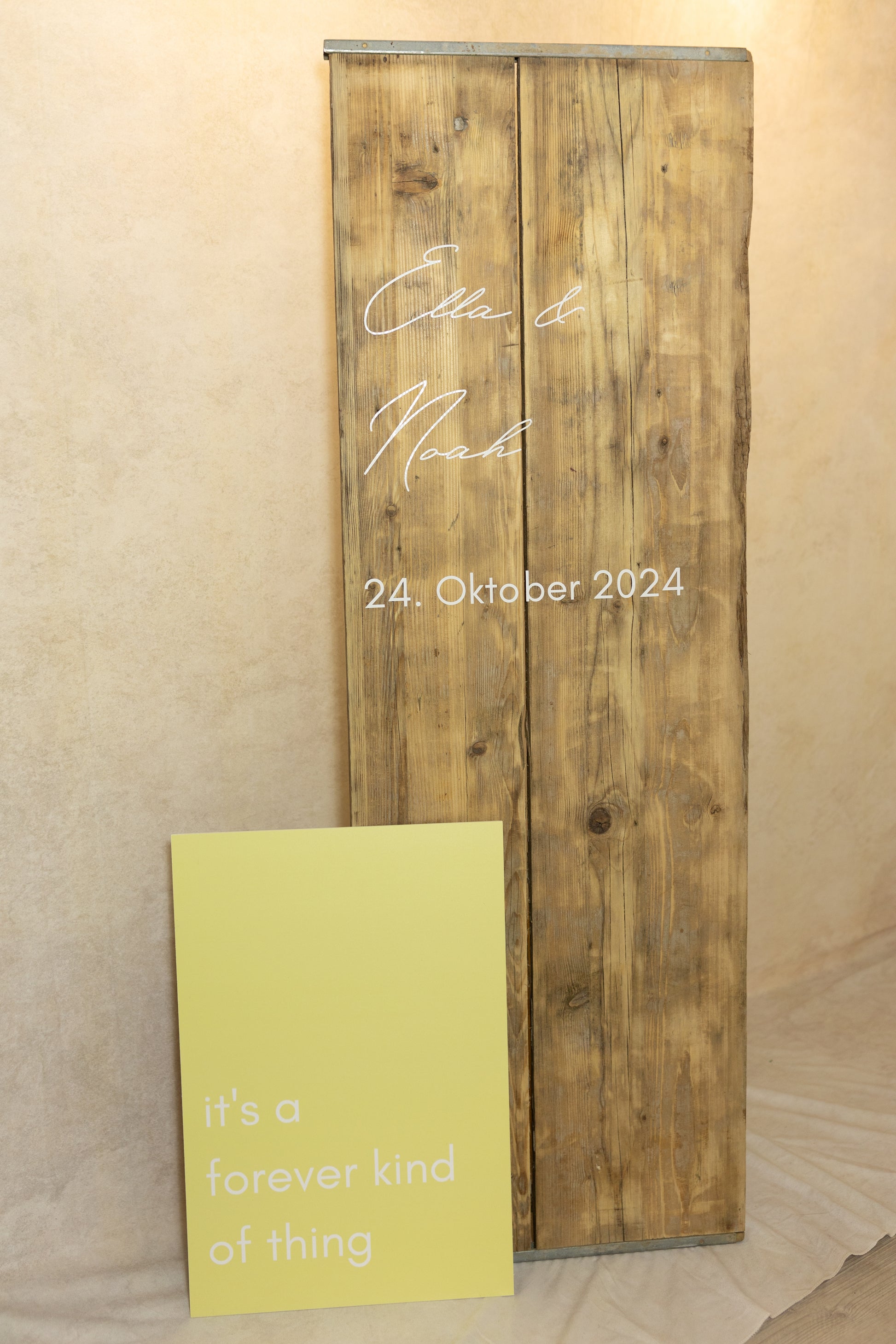 „Silvan & Tryck“ besteht aus Holz im Used-Look kombiniert mit einem edlen Druck auf Hartschaum. Eure Vornamen und das Datum passen wir selbstverständlich nach euren Wünschen an. Die Personalisierung ist bereits im Preis enthalten. Der Druck auf Hartschaum ist nicht nur in Blau, sondern auch in Grün und Gelb erhältlich.
